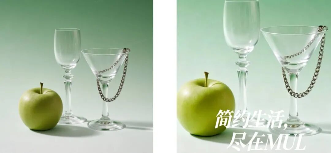 提示词:变成一张海报 “简约生活,尽在MUL”,花字,白色字体