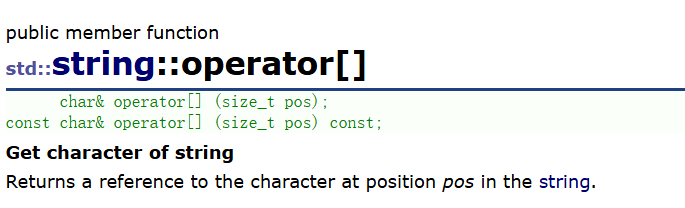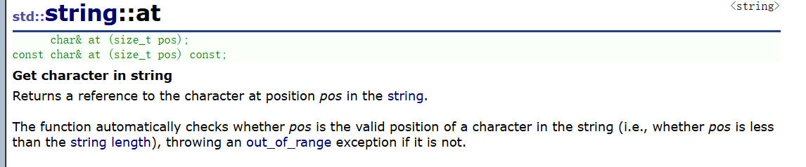 at成员函数返回字符在 string 中 pos 位置的引用。