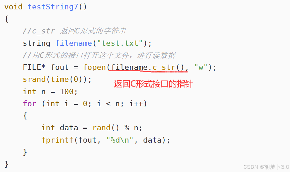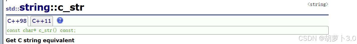 c_str 是以const char* 的形式返回C形式的字符串,C形式的字符串的特点是结尾有\0标记,有时如果我们想用C的接口进行操作,可以使用它。
