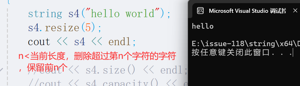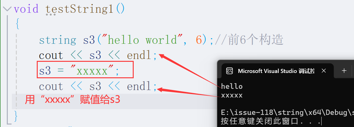 string s3("hello world", 6);//用字符串的前6个字符构造