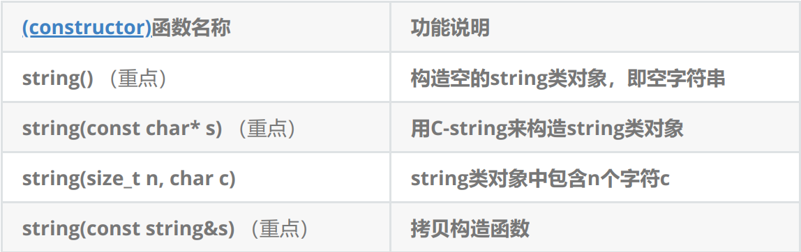 从上图来看,string类对象的构造有好多种,但是有些构造被使用的次数很少,我们就掌握下面几种常见的构造即可: