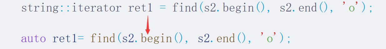 string::iterator ret1 = find(s2.begin(), s2.end(), 'o');