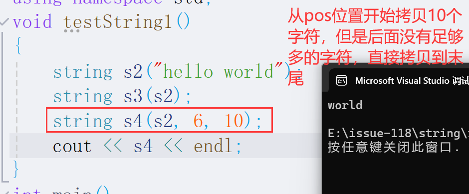 简单来说:从字符串的pos位置开始复制len个字符来初始化当前类型另一个要创建的对象。