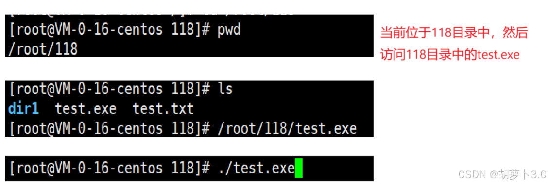 不可以直接写test.exe会报错,因为系统找不到这个test.exe(虽说我们知道这个test.exe在根目录下的root目录下的118目录里面,但是系统不知道啊),所以必须给可执行程序带路径