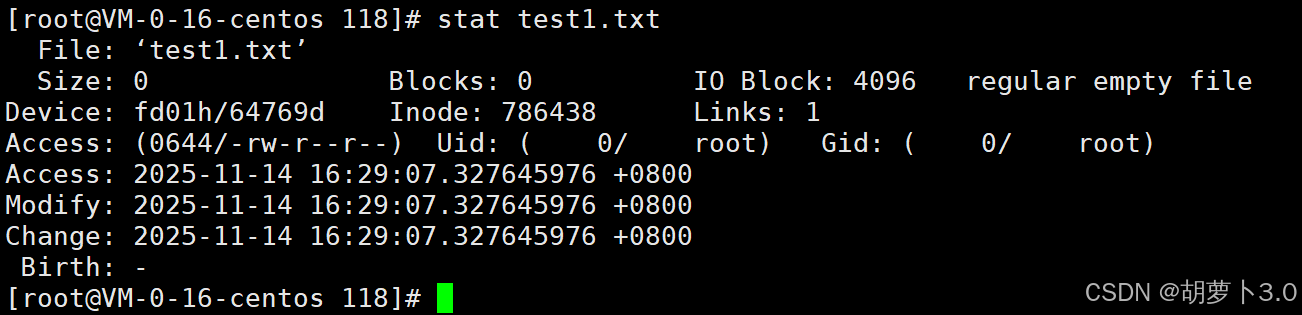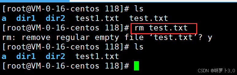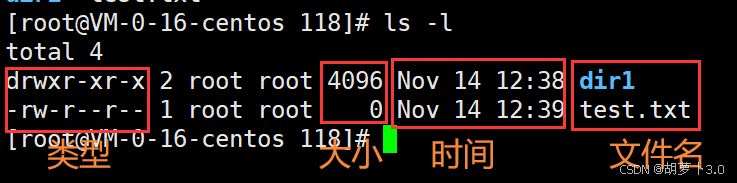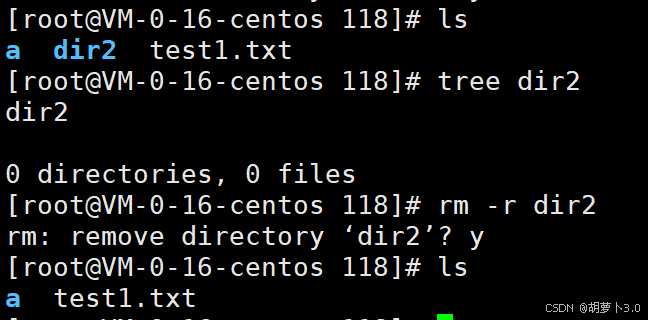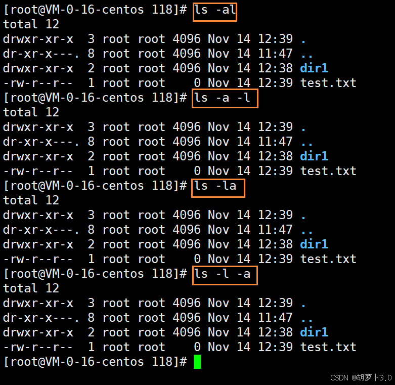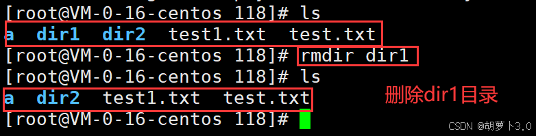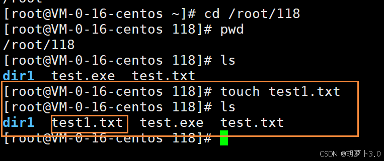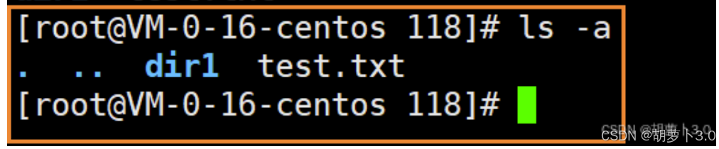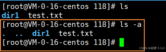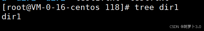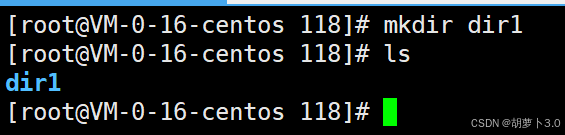 之前博主已经在/root/118路径下mkdir了一个dir1目录,所以这里ls出来的就是dir1。