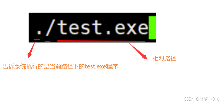 通过上面的学习,我们知道 . 表示当前路径,我们可以这样写—— ./test.exe