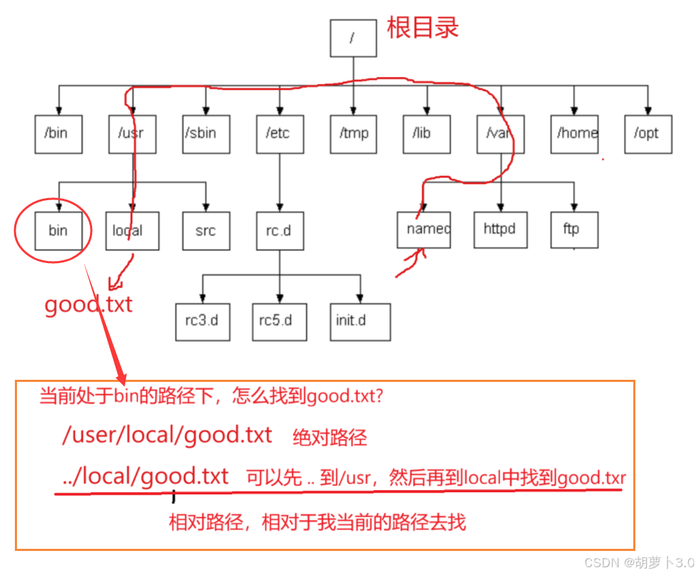 我们是不是进入根目录/,到usr,再到bin中找到hello.txt,也就是这样:/usr/bin/hello.txt
