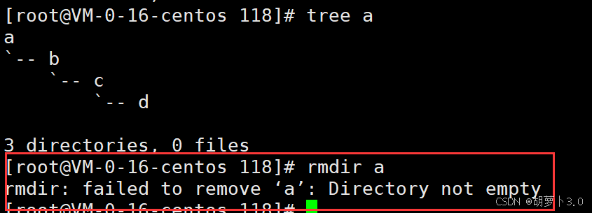 我们看到a目录不是一个空的目录,使用rmdir不能删除