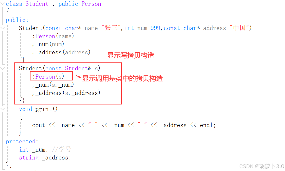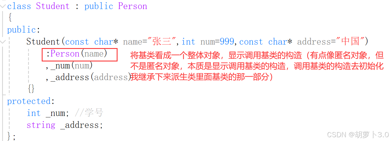 :Person(name)//显示调用基类的构造