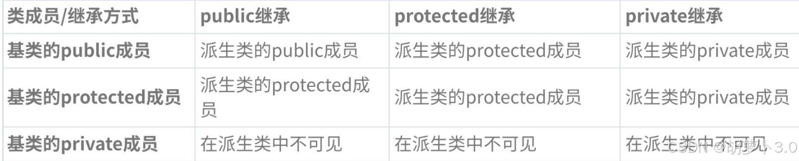 正是因为有三种继承方式和三种访问,所以才有了继承基类成员访问方式的九种变化。
