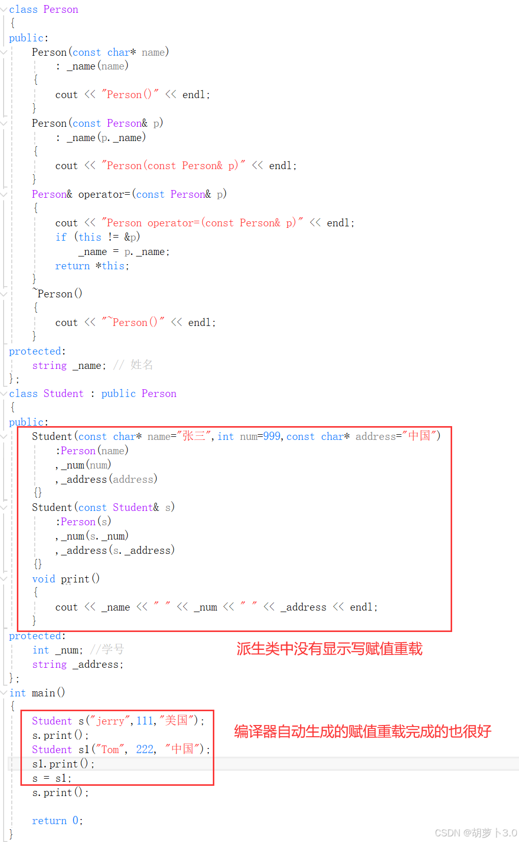 cout << "Person operator=(const Person& p)" << endl;