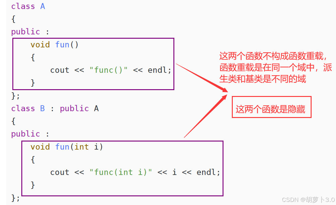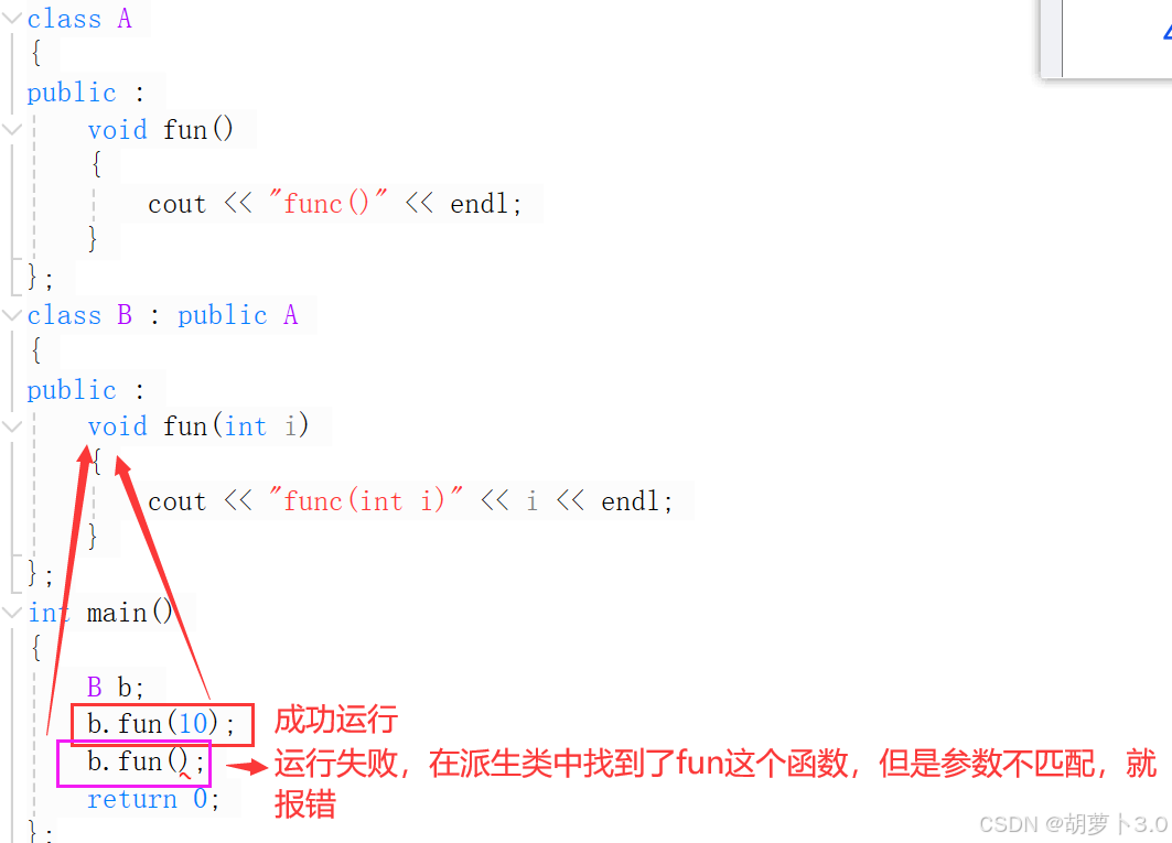 };为什么选择B和A呢?A中的fun函数和B中的fun函数不是构成函数重载吗?