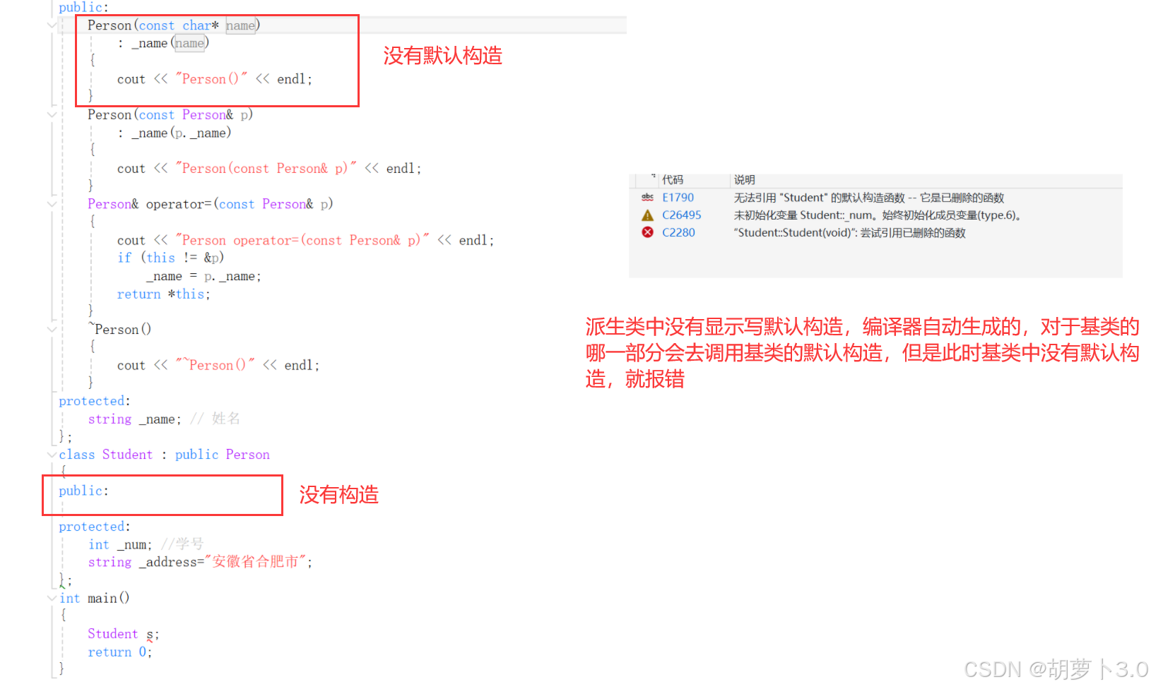 这里的基类没有默认构造的原因是:不知道给_name初始化成什么(因为没有给相应的字符串进行初始化)