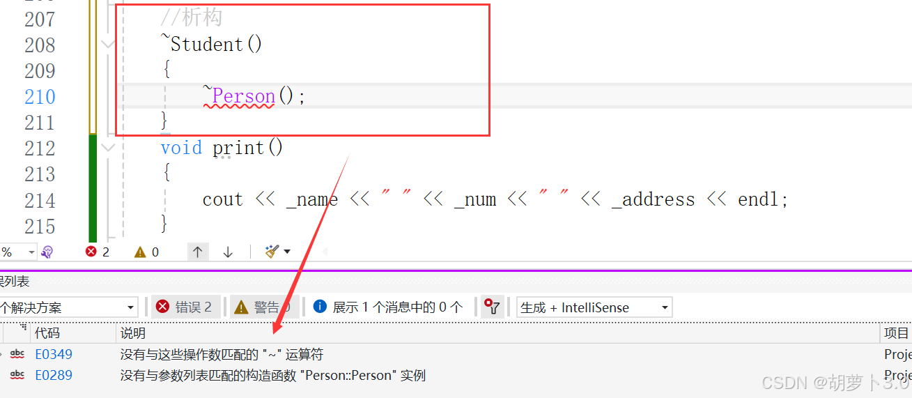 所以,基于以上原因:派生类中没有显示写构造,基类不也提供默认构造,派生类中的_num和_address也要我们自己去初始化,我们需要自己写一个~
