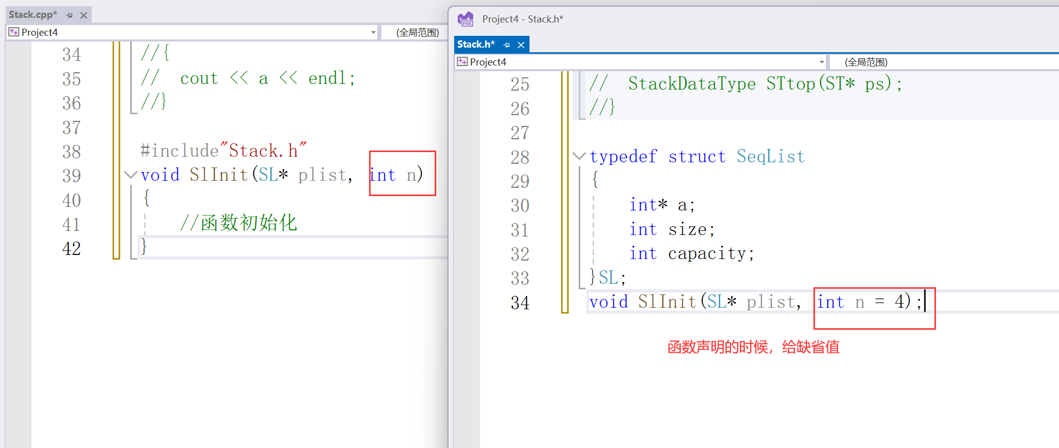 在前面数据结构的学习中,我们学习了顺序表,通过缺省参数的学习,我们可以对顺序表进行一点升级: 当我们已知要插入数据的个数时,我们可以使用缺省参数在初始化时可以直接申请已知数据个数的空间,这样就可以避免后期开空间