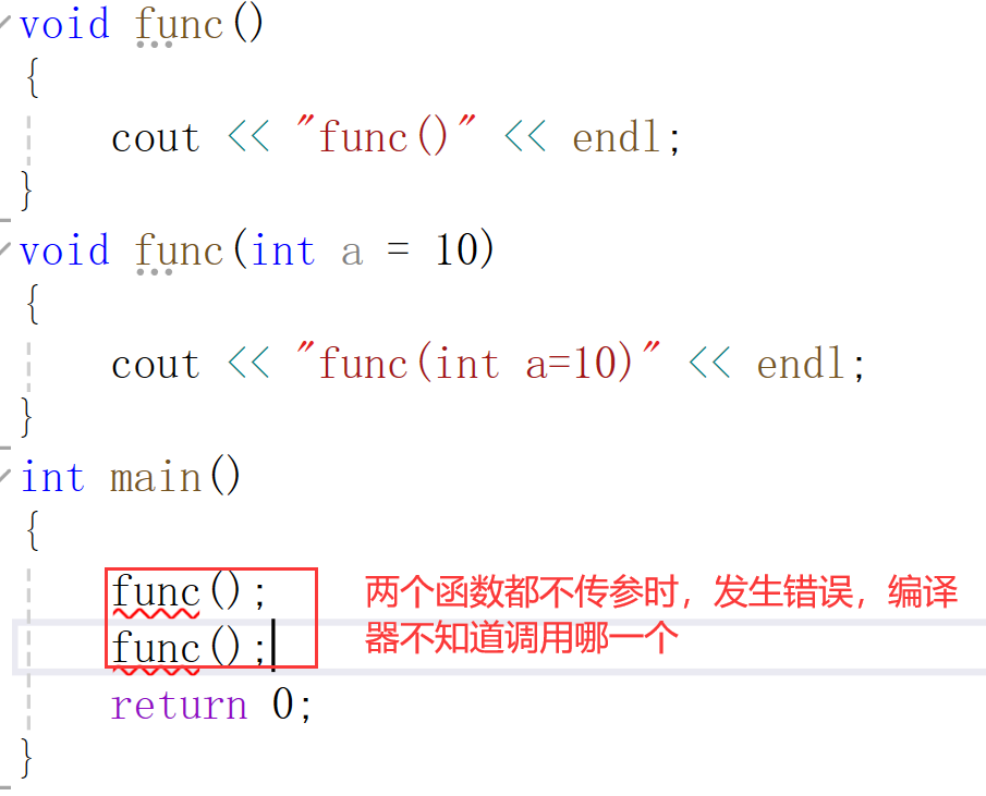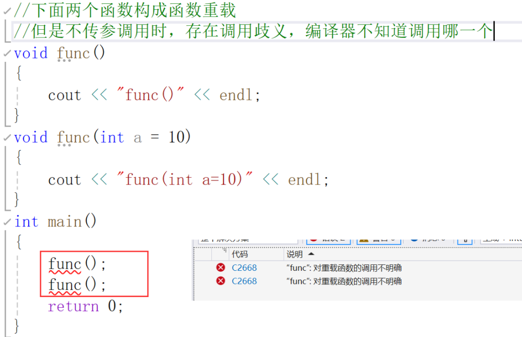 但是,调用两个函数,并都不传参,编译器不知道调用哪一个