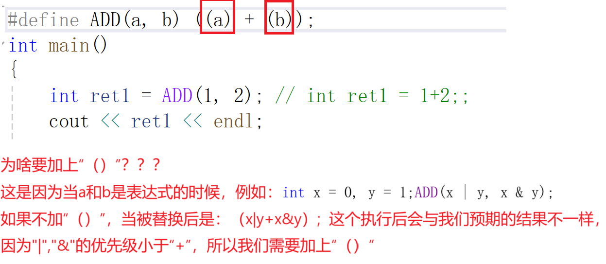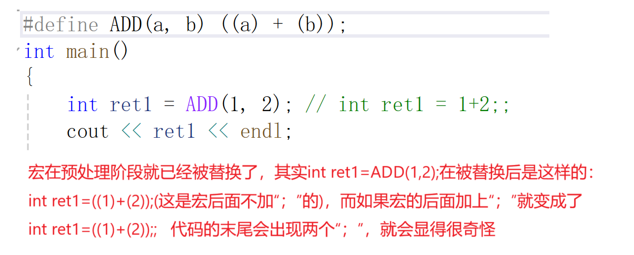 int ret1 = ADD(1, 2); // int ret1 = 1+2;;