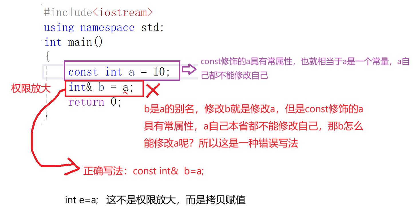 注意:权限的放大和缩小,只存在const 修饰指针,&引用的场景