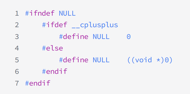 NULL实际是⼀个宏,在传统的C头文件(stddef.h)中,可以看到如下代码: