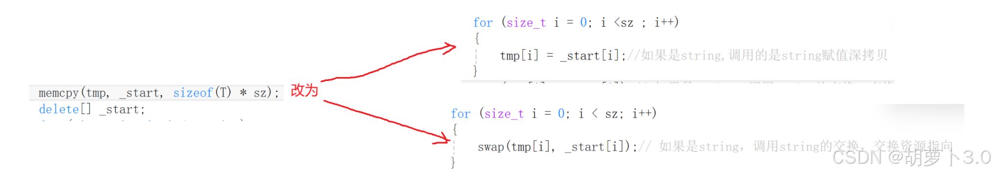 // swap(tmp[i], _start[i]);// 如果是string,调用string的交换,交换资源指向