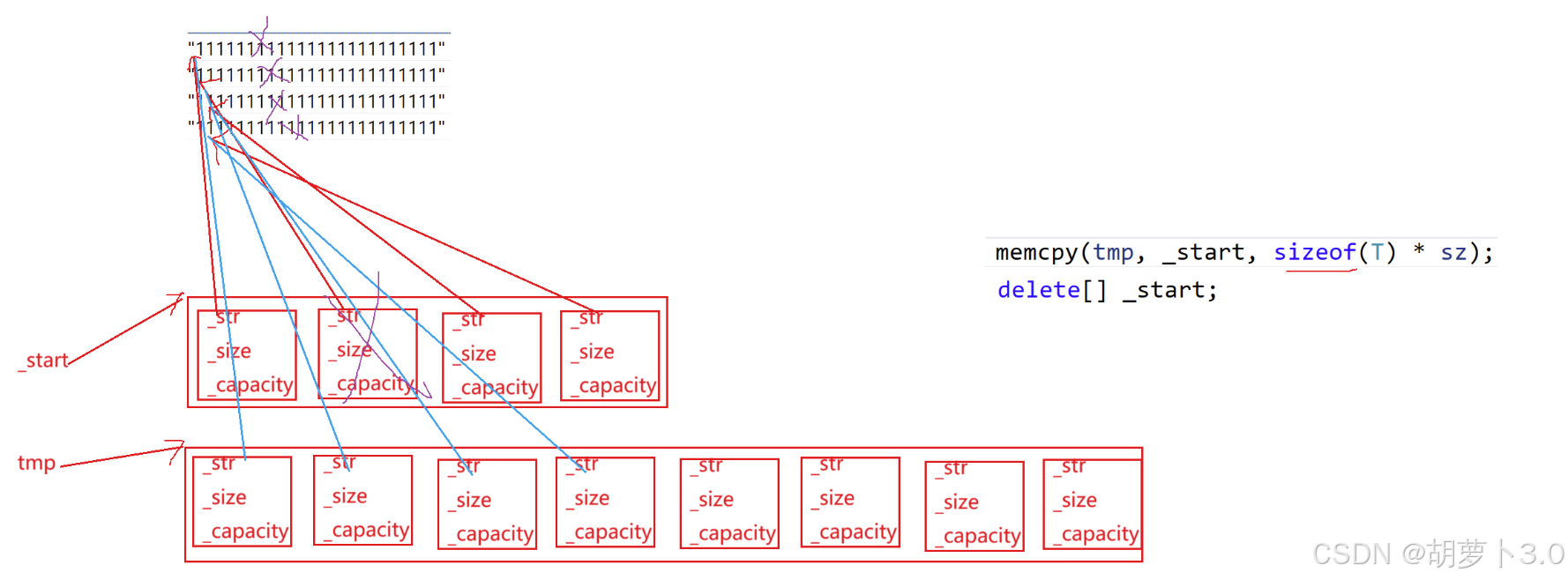 //memcpy(tmp, _start, sizeof(T) * sz);//浅拷贝无法满足内部有资源的