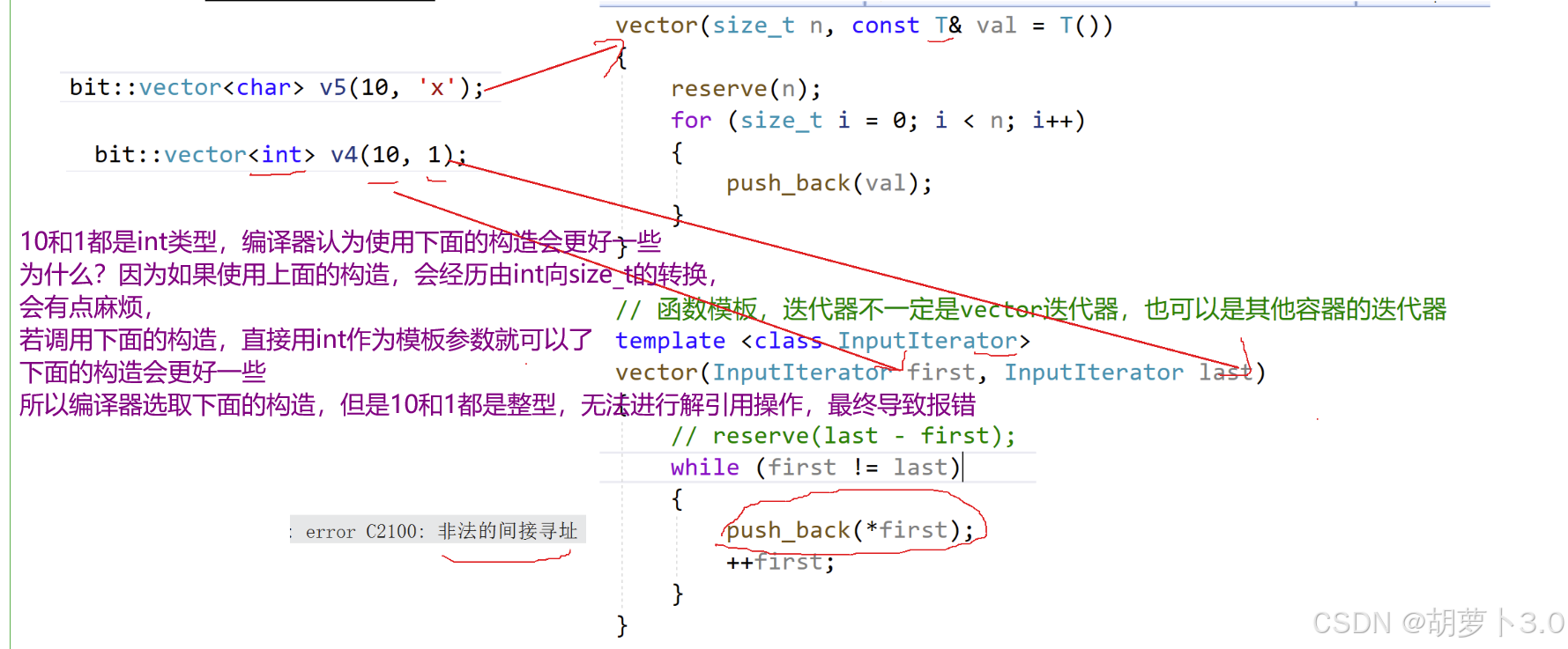vector<int> v(10,'x');编译器默认生成的赋值是浅拷贝,浅拷贝对于内置类型可以,但是对于内部有资源的自定义类型就要实现深拷贝。