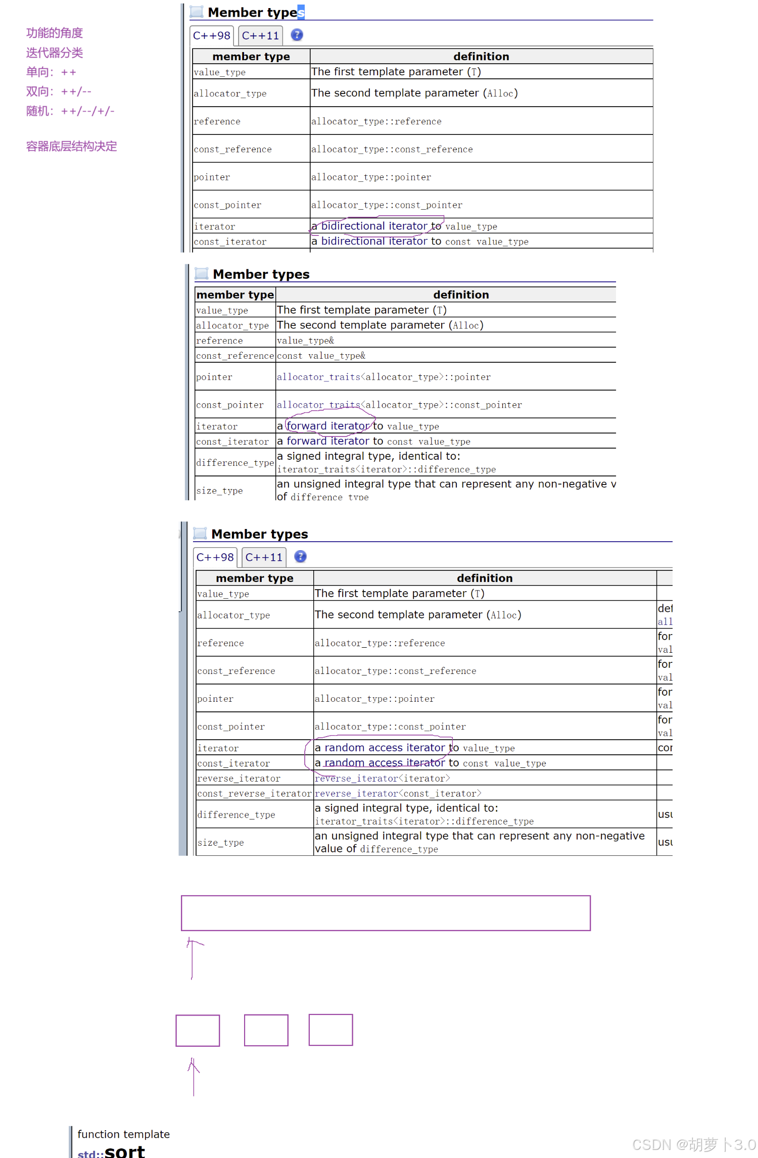 1. list 不支持随机访问,不能用 STL 通用 sort 算法,需用自身成员函数