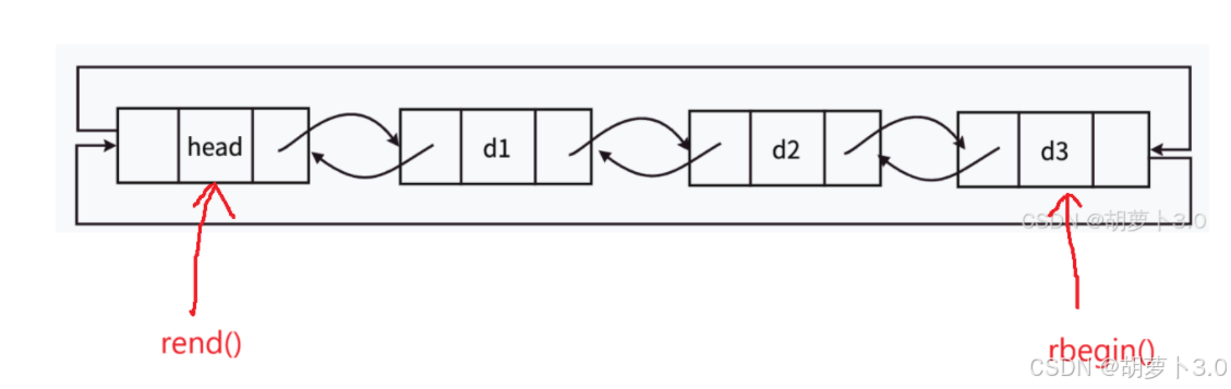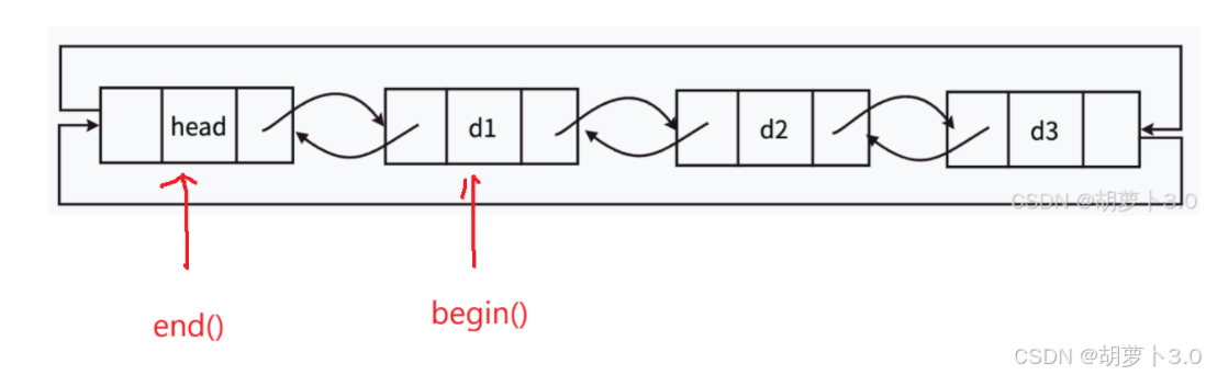 list 的本质是双向循环链表,且带有一个"哨兵位头结点"(不存储有效数据),结构如下