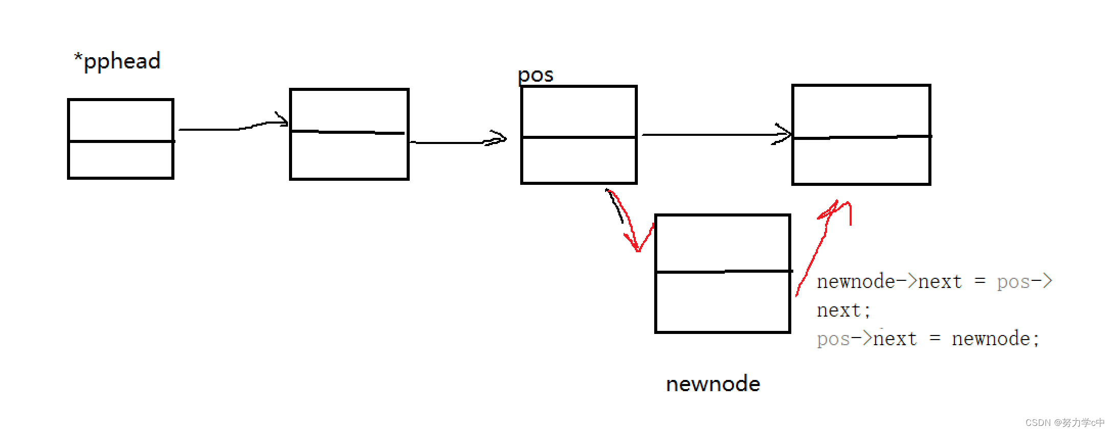 void SLInsert(SLNode** pphead, SLNode* pos, SLTDataType x);