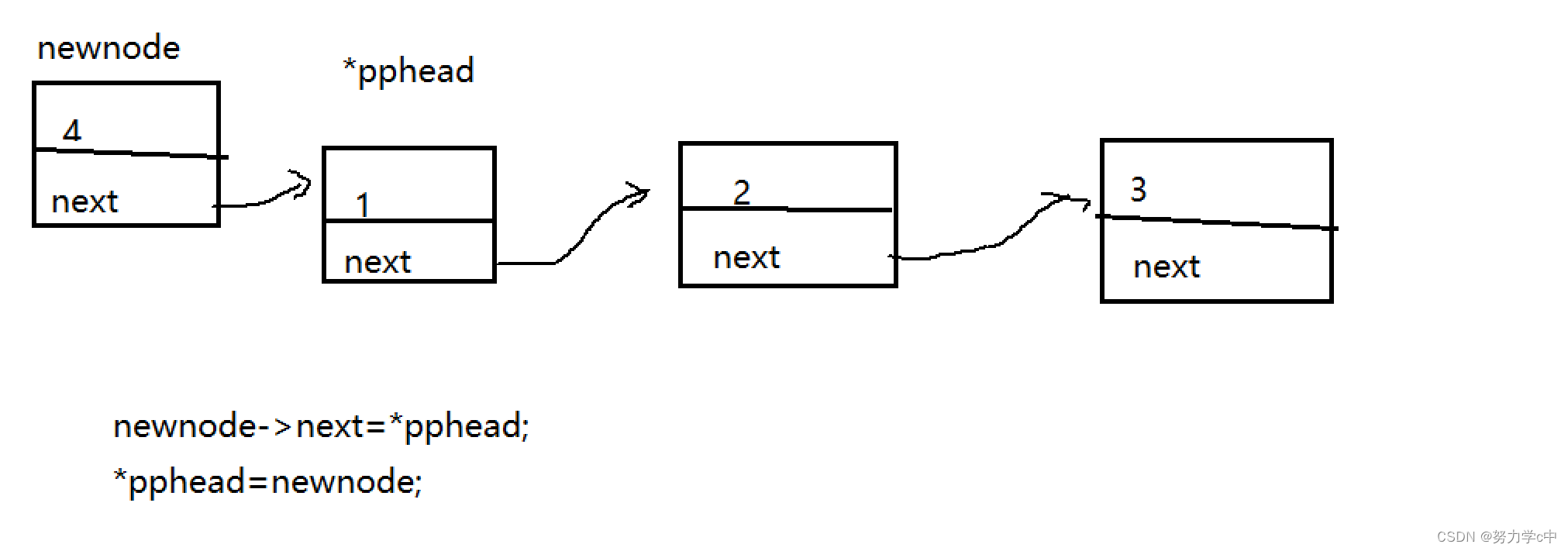 *pphead = newnode; //*pphead指向newnode,新的头节点
