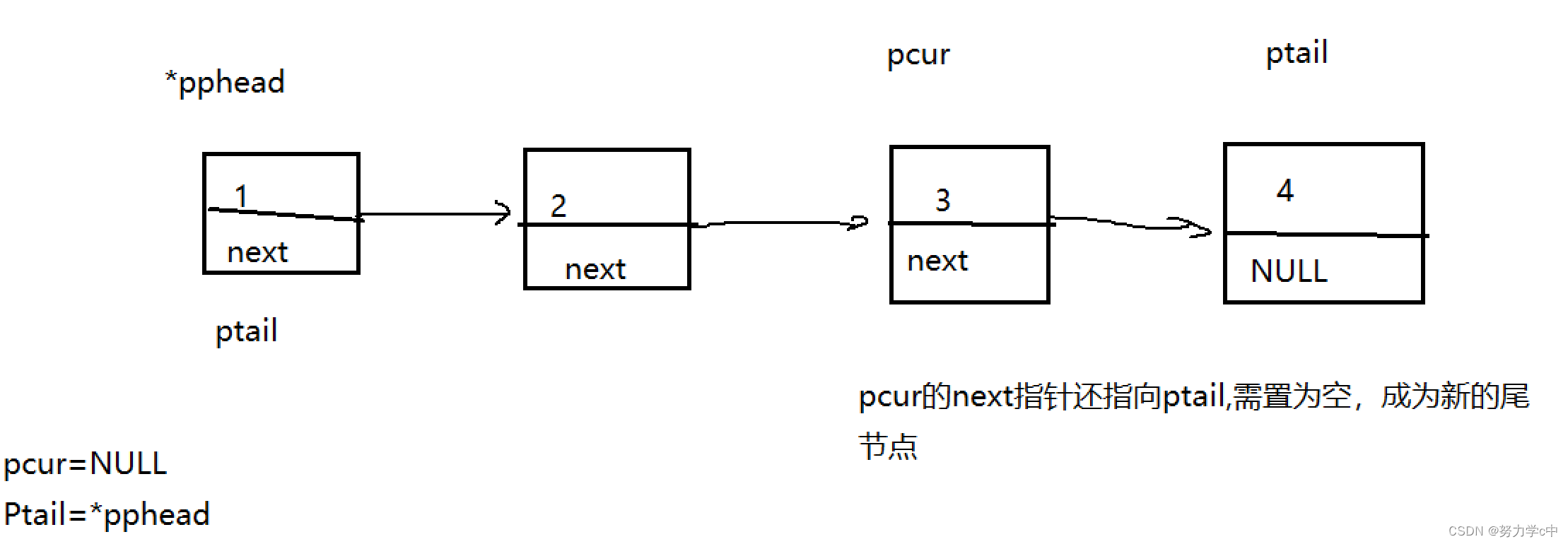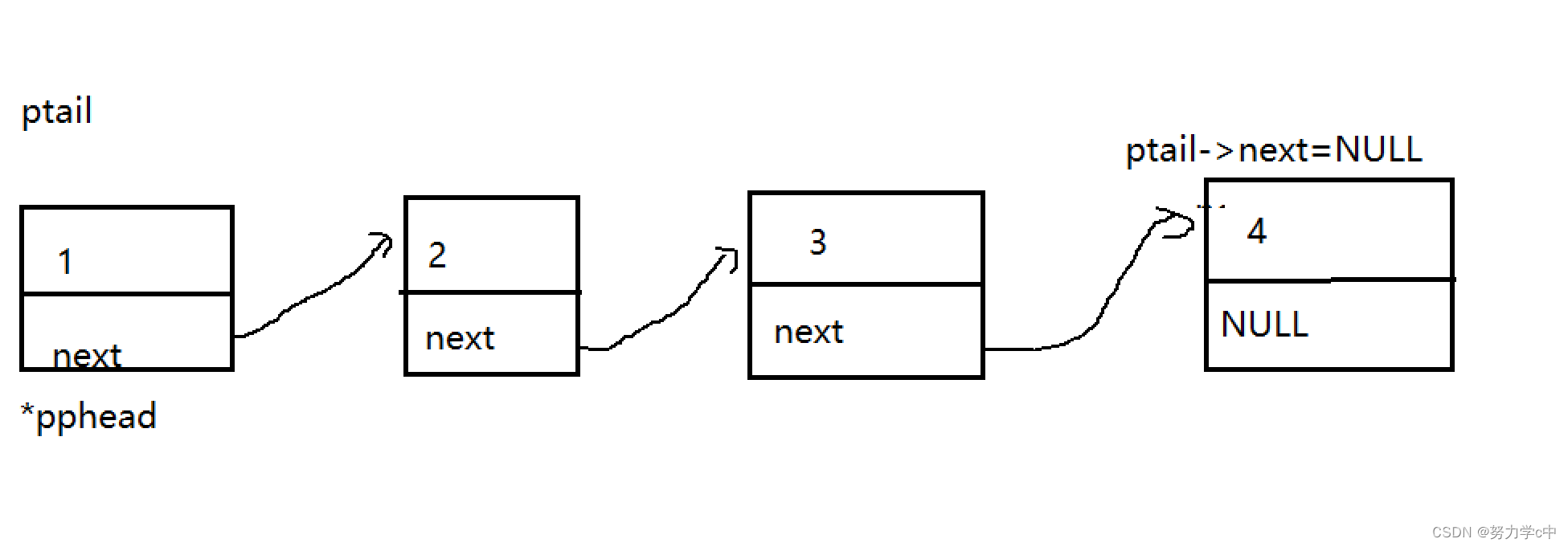 注意:在创建新节点时,已经让next=NULL,所以在尾插后不需要再置位空。