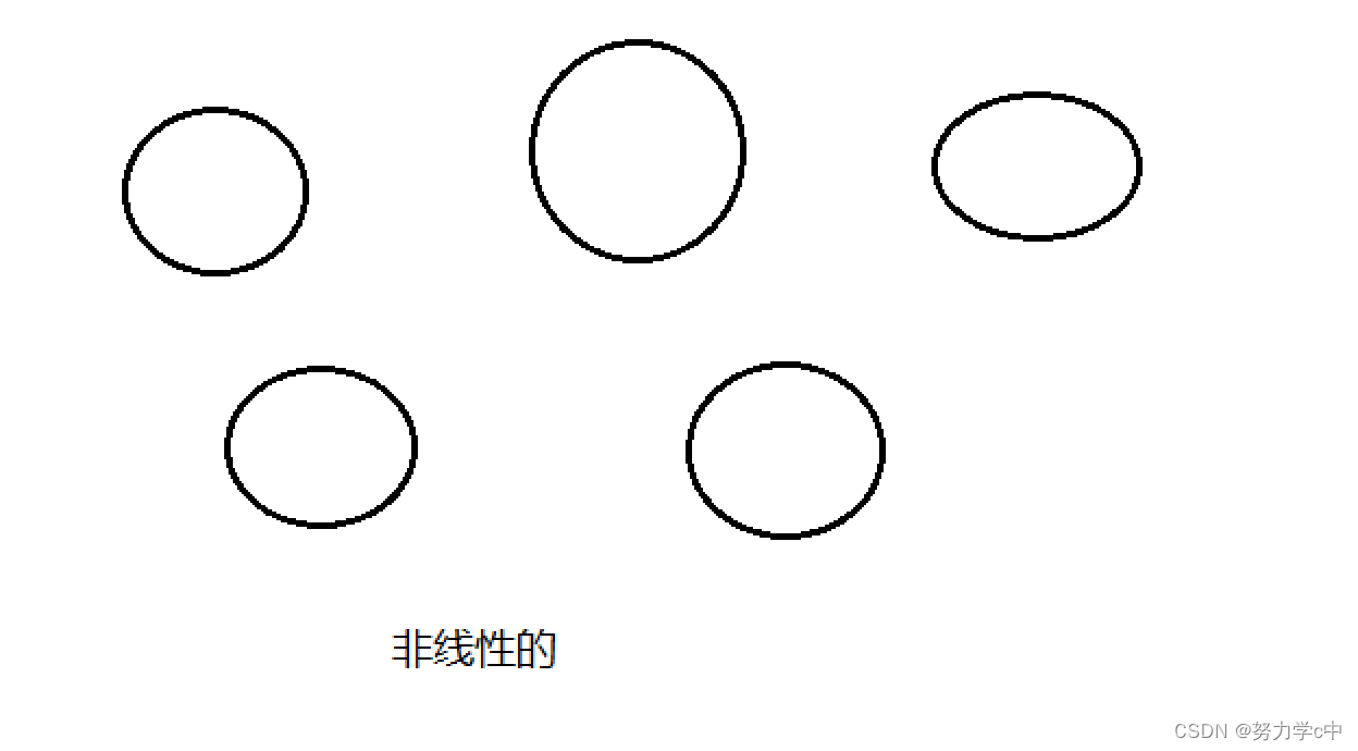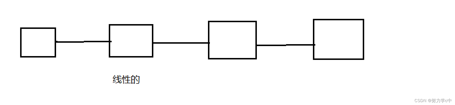 逻辑结构:指的是数据之间的逻辑关系,是抽象的。比如一些数据是没有任何关系,是孤立的,就是非线性的,如果这些数据可以想象成用一条“线’连接起来,那就是线性性的。而对于线性表来说,它在逻辑结构上一定是线性的。如下图: