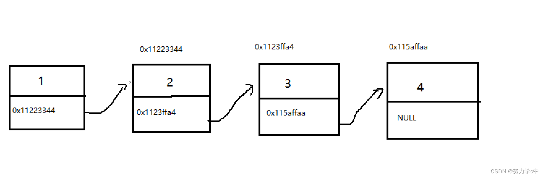 struct SListNode { int data; struct SListNode* next; //指向下一个节点的指针 };