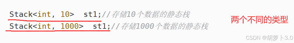 Stack<int, 10> st1;//存储10个数据的静态栈
