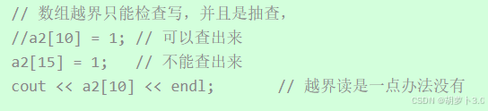 在前面的学习中,我们了解到:数组越界是会检查的,但是这种检查是抽查,靠近临近位置可以查出来——