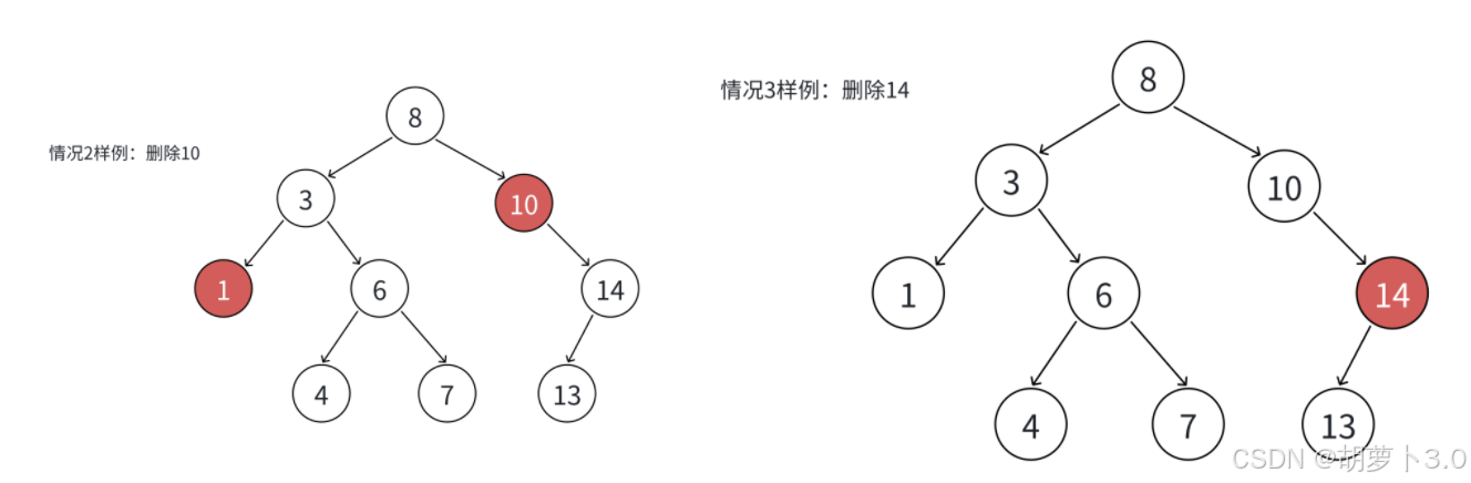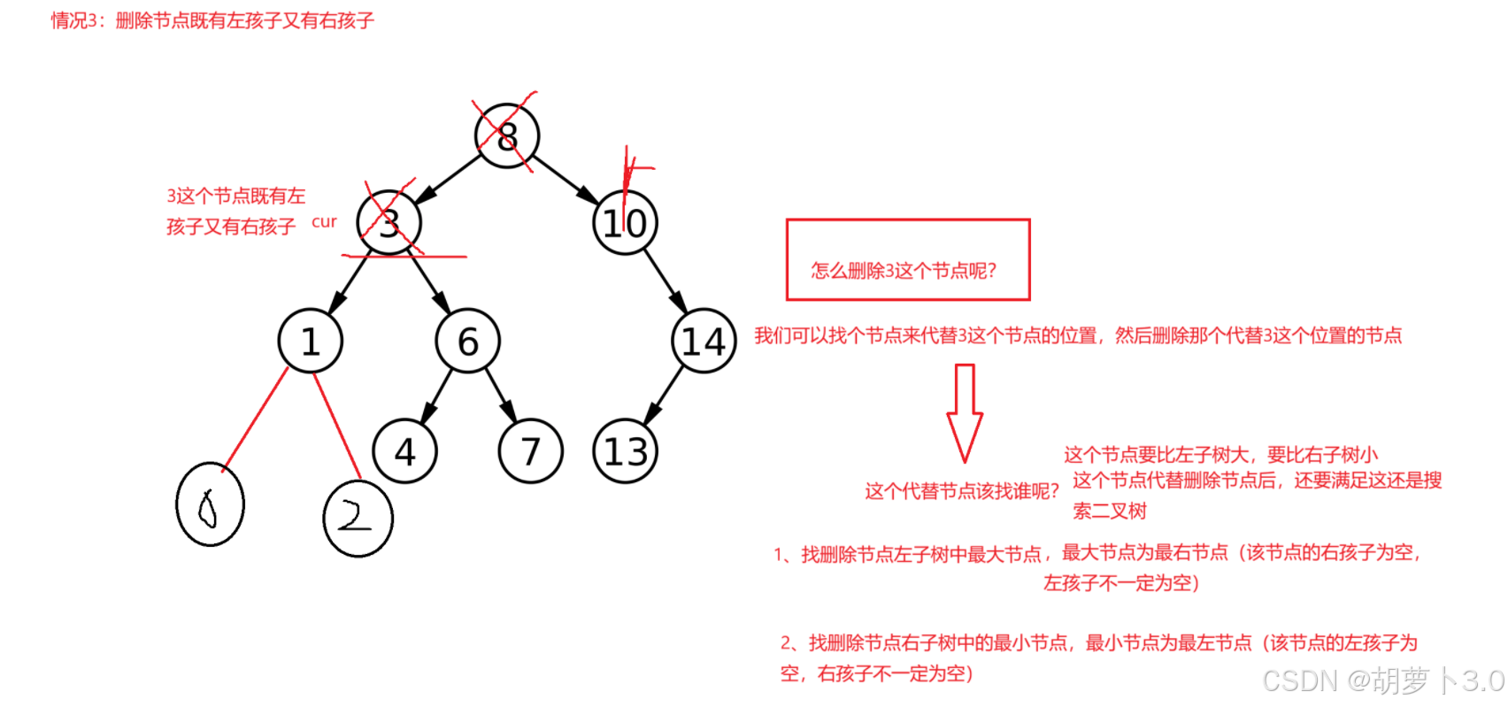 //也可以找删除节点的左子树中的最大节点(最右节点(右孩子为空的节点)),然后替换