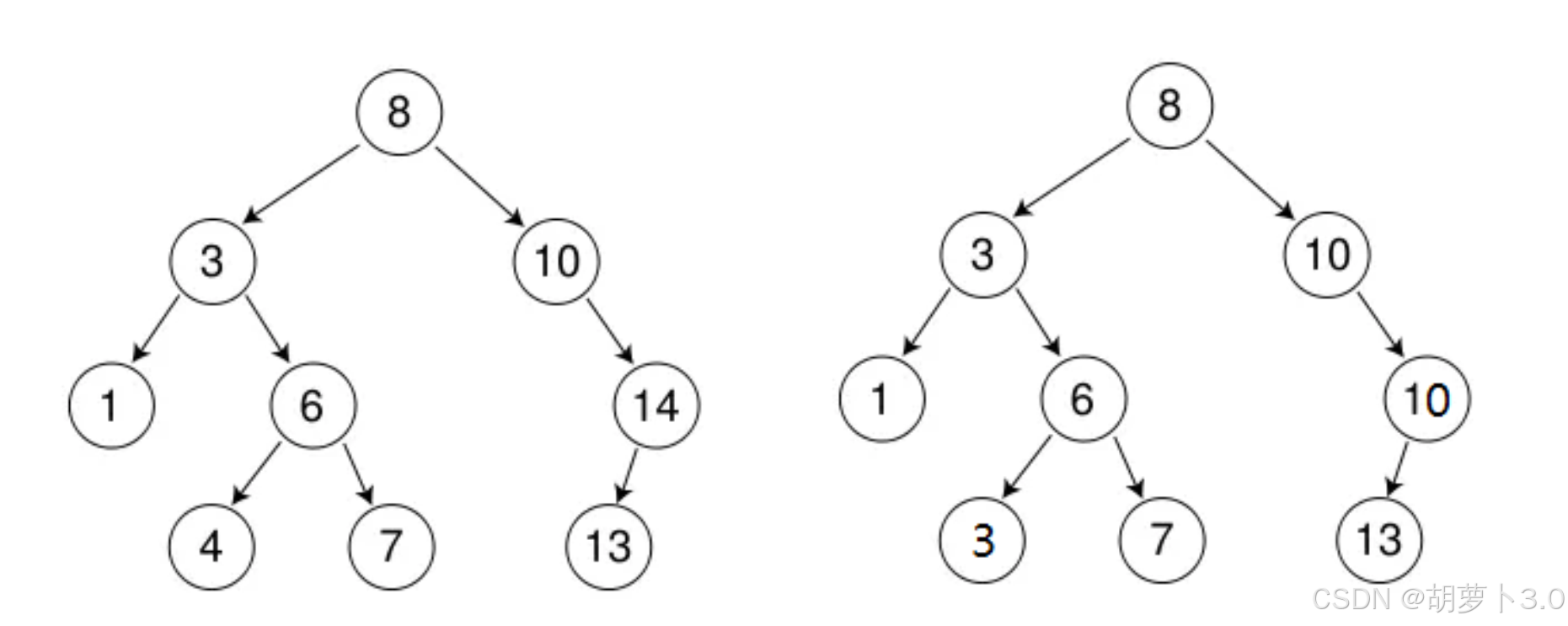如下图所示就是两个搜索二叉树——