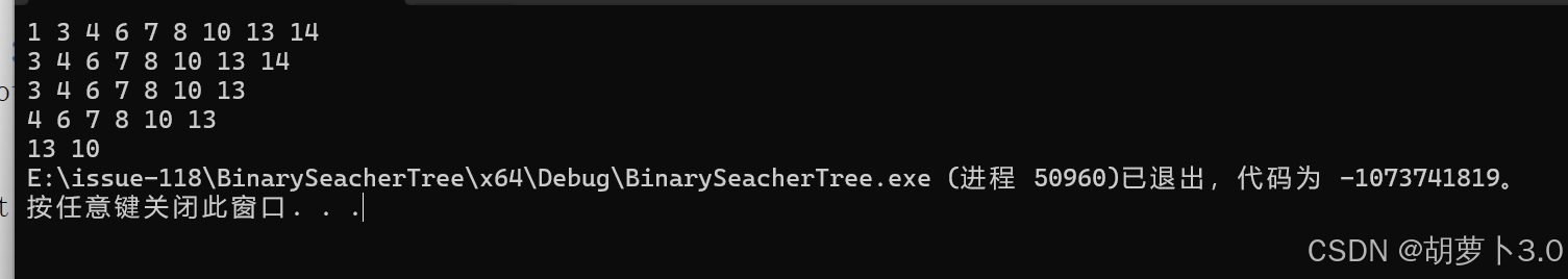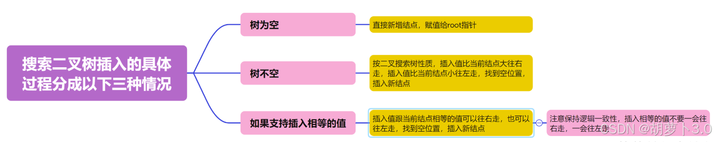 二叉搜索树中可以支持插入相等的值,也可以不支持插入相等的值,具体看使用场景,后续我们学习的map/set/multimap/multiset系列容器底层就是二叉搜索树,其中map/set不支持插入相等的值,multimap/multiset支持插入相等的值。