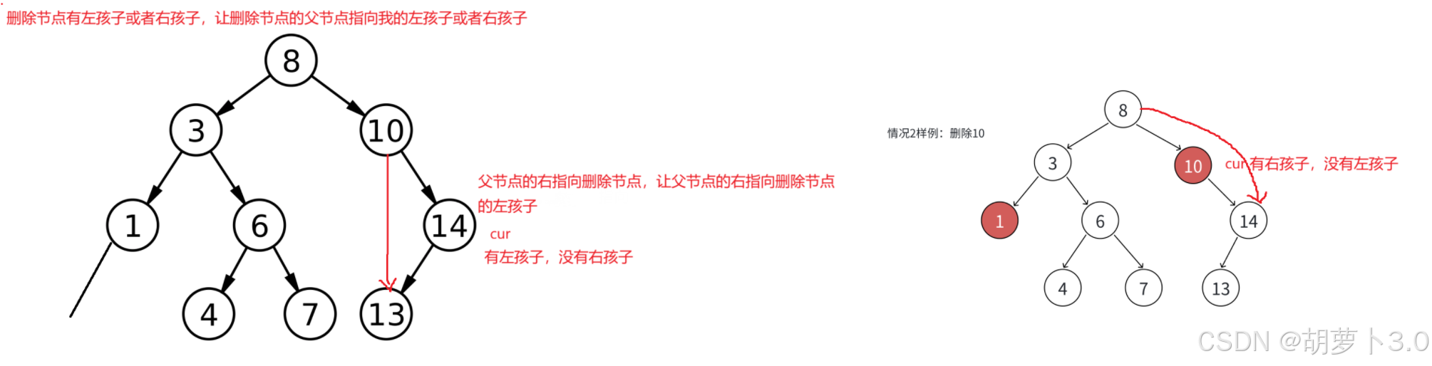//让删除节点的父节点指向我的左