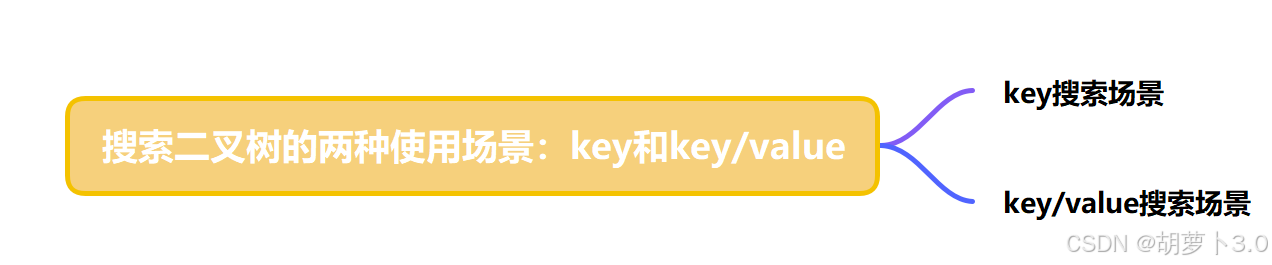只有key作为关键码,结构中只需要存储key即可,关键码即为需要搜索到的值,搜索场景只需要判断key在不在。key的搜索场景实现的二又树搜索树支持增删查,但是不支持修改,修改key破坏搜索树结构了。