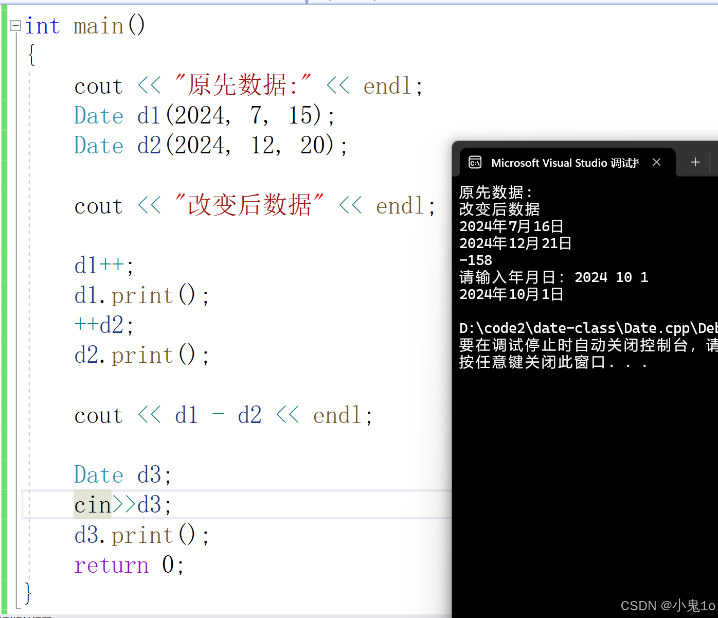 }我们想要实现输入的两个日期进行运算,这里就需要对<<和>>进行运算符重载。