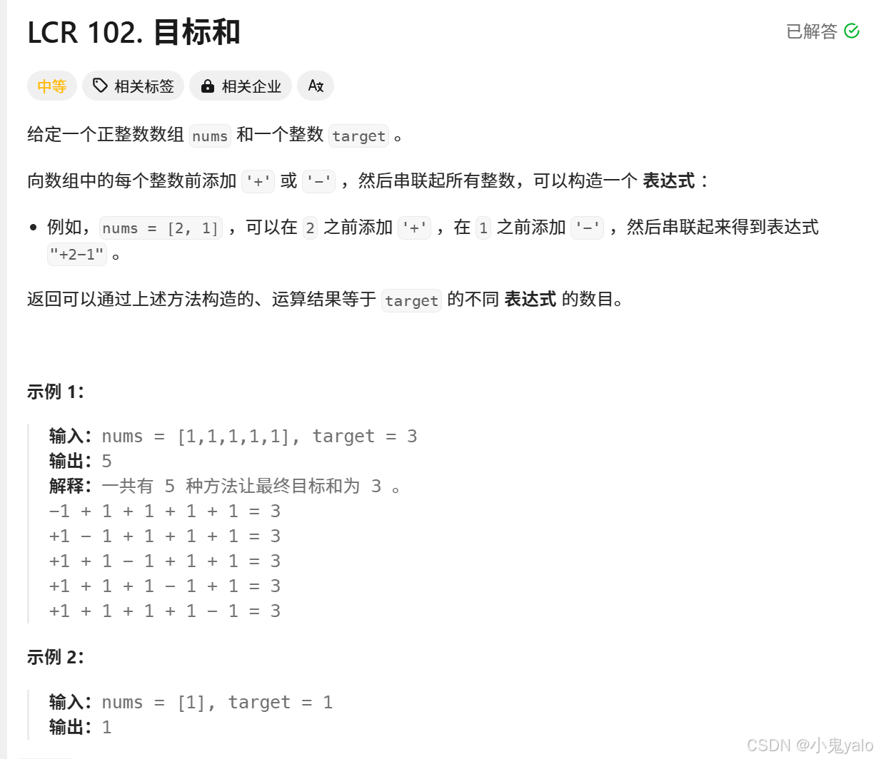 };题目链接:LCR 102. 目标和 - 力扣(LeetCode)
