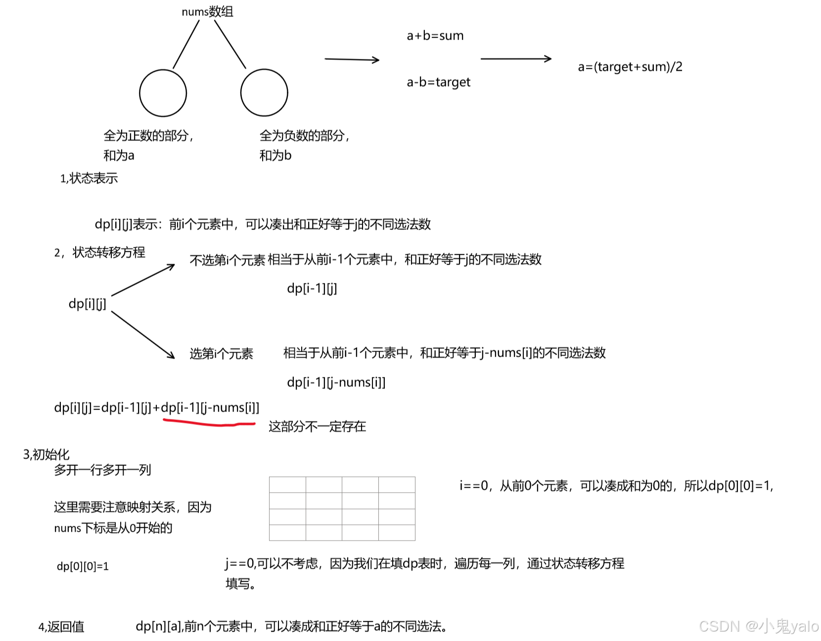 a=(target+sum)/2,target和sum都是已知的。此时,问题就转化成了,是否可以在数组中找到和正好等于a的不同选法。