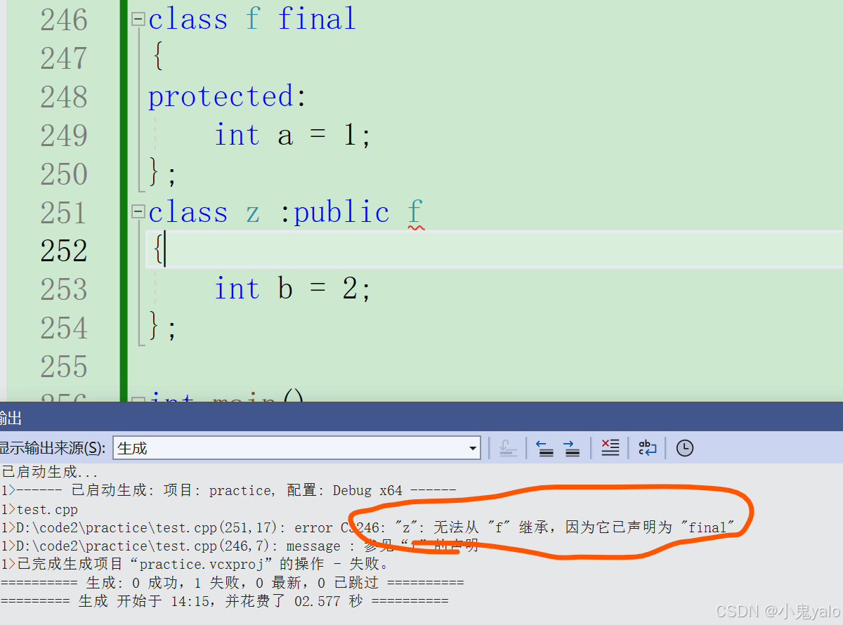 C++11新增了一个关键字final,final修改基类,派生类就不能继承了。