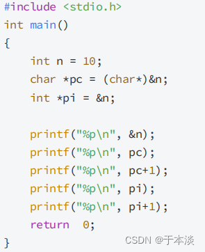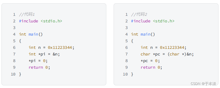 结论:指针的类型决定了,对指针解引⽤的时候有多⼤的权限(⼀次能操作⼏个字节)。