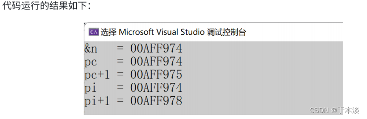 我们可以看出, char* 类型的指针变量+1跳过1个字节, int* 类型的指针变量+1跳过了4个字节。