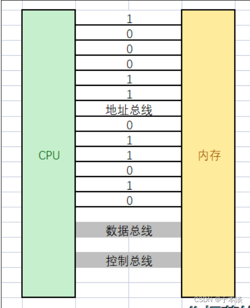 ⾸先,必须理解,计算机内是有很多的硬件单 元,⽽硬件单元是要互相协同⼯作的,所谓的协同,⾄少相互之间要能够进⾏数据传递。但是硬件与硬件之间是互相独⽴的,那么如何通信呢?答案很简单,⽤"线"连起来。⽽CPU和内存之间也是有⼤量的数据交互的,所以,两者必须也⽤线连起来。不过,我们来关⼼⼀组线,叫做地址总线。