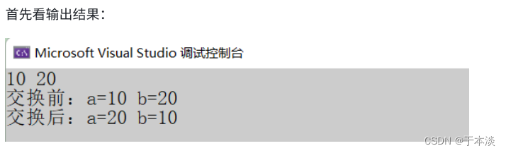 printf("交换后:a=%d b=%d\n", a, b);