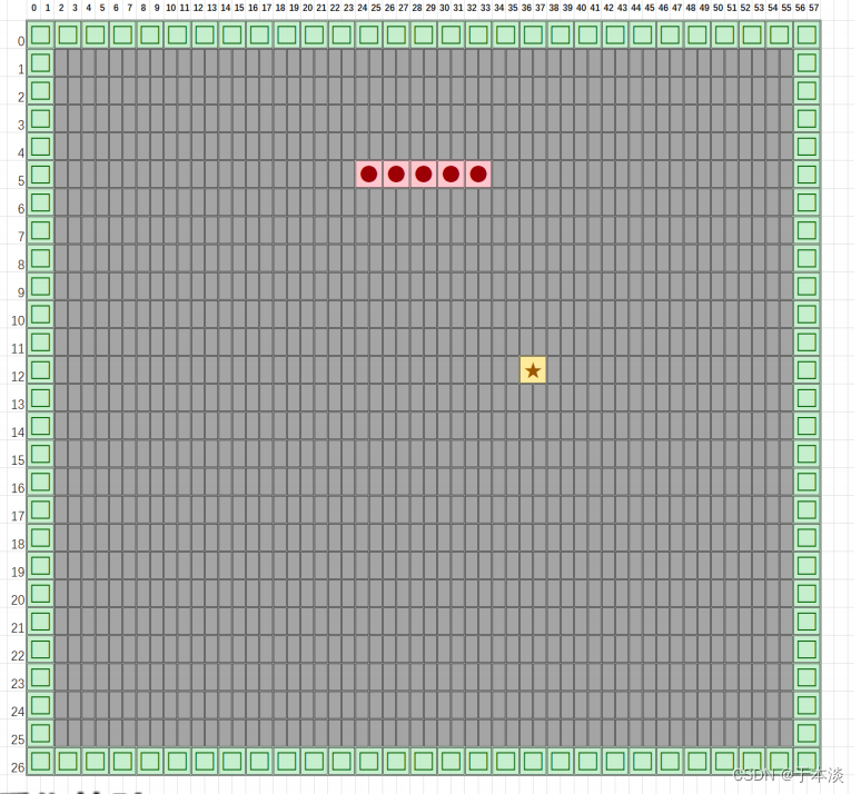 我们假设实现⼀个棋盘27⾏,58列的棋盘(⾏和列可以根据⾃⼰的情况修改),再围绕地图画出墙,如下: