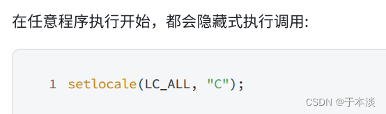 setlocale 函数⽤于修改当前地区,可以针对⼀个类项修改,也可以针对所有类项。 setlocale 的第⼀个参数可以是前⾯说明的类项中的⼀个,那么每次只会影响⼀个类项,如果第⼀个参数是LC_ALL,就会影响所有的类项。 C标准给第⼆个参数仅定义了2种可能取值: "C" (正常模式)和 " " (本地模式)。